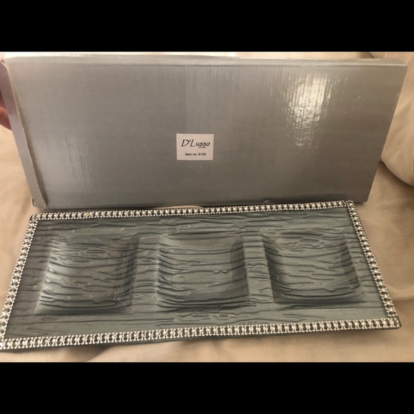 Perfect for a dinner get together or during the holidays or even a gift It has rhinestones all around and a three section server
