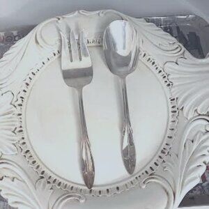 Serving Spoon and Fork, 9" Silverplate Wm. Rogers Serveware Silverware