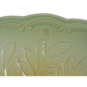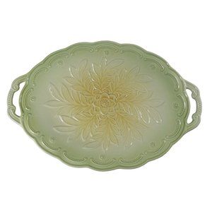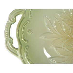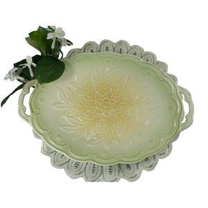 Serving Tray Ceramic Double Handles Embossed Raised Floral Pattern 12.5"