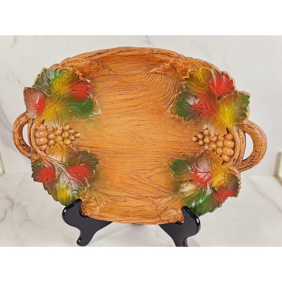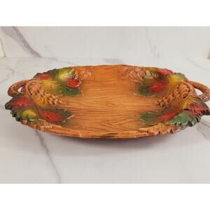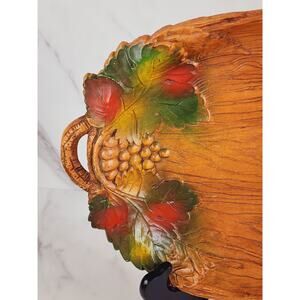 Serving Tray Dish Fall Leaves & Grapes 70's Multi Products 12" x 9" Fruit Bowl