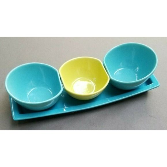 TAG Domo Serving Set Tray and bowls Blue Green Relish Salsa Server