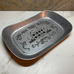 Vintage Wilton Armetale "Bless This House" Pewter Bread Serving Tray Plate