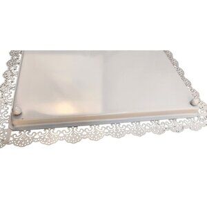 Serving or Display Tray Dish White Rectangular Lace-Style Decorative Metal Tray