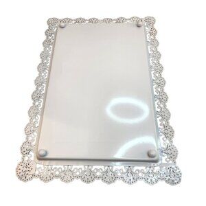 New This elegant white tray features a delicate lace-style edge, ideal for serving or as a decorative display piece. Its metal construction ensures durability. Food Storage Tray: Large capacity, can hold different snacks, sundries, cakes, cupcakes, desserts, cookies, candies, and more. Material: The display stand is made of iron material, which is strong and . Features: The display stand has beautiful edges, fine workmanship, and decoration. Wide Range Of Uses: The kitchen storage box is suitable for the home, kitchen, living room, office, reception room, coffee shop, restaurant, party, and other occasions. • Intricate lace-style border design • Made of sturdy metal for long-lasting use • Raised edge prevents items from sliding off • Versatile for serving or decor purposes • Lightweight and easy to carry top to bottom = 14 inches, side to side = 10 inches Item will be well packed to prevent shipping damage. Thank you for shopping in my closet! I'm happy to bundle items, and extra discounts will be provided for bundles of 3 items or more. Make sure to check out my other listings! If you have any questions please leave a comment below or message me! **All photos are mine and are NOT STOCK PHOTOS in any of my listings -- so you can be confident in your decision to purchase!**