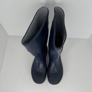 Up for sale is a pair of women's work boots in navy color, size 5. These boots by Honeywell are made of PVC and feature a round toe shape, pull-on closure, and mid-calf shaft style. The boots have a slip-resistant and waterproof design, making them suitable for both winter and summer seasons.