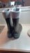 Stylish black rubber boots featuring gray cuffs. Perfect for rainy days. These are Made in USA and they're extremely well, made the right foot is steel toe and the left foot is not steel toe. That's how they ended up in the resale shop Other than that they have no imperfections Iship quick these weigh around 5lbs so getting deal on shipping can't be combined with a bundle at all .