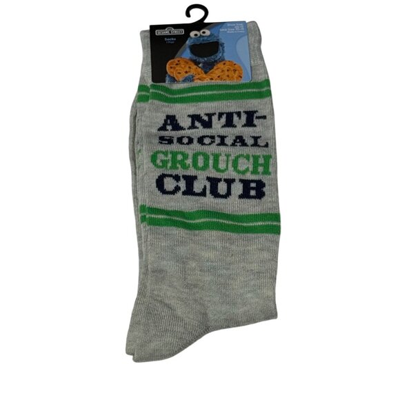 Sesame Street Anti Social Grouch Club Gray Crew Socks Men’s 6-12 New