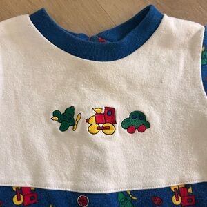 Charming baby outfit with a fun Sesame Street theme. Features bright blue and white colors.