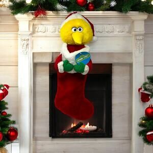 Sesame Street Christmas Stocking Big Bird 3D Plush Santa Kurt Adler Vintage 1999