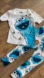 Sesame Street Cookie Monster Blue & White Long Sleeve PJ Pajama Set kids sz 3T