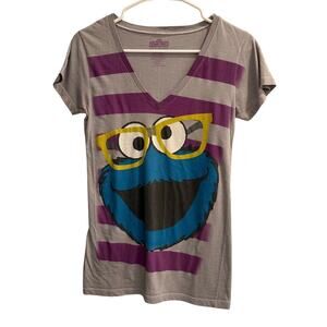 Sesame Street Cookie Monster Glasses V Neck Tee Shirt Size Medium