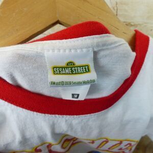 Slightly pre-owned and in great condition, Sesame Street Cookie Monster Munchies Ringer T-Shirt Women M White Red Retro. Graphic is meant to look distressed for vintage look. 100% Cotton. Classic ringer tee with red collar and sleeve trim. Official Sesame Street / Fruit of the Loom collab.