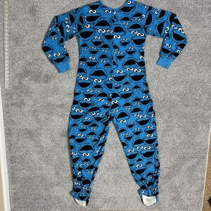 Sesame Street Cookie Monster Pajamas Womens Small Blue Fleece Footed One-piece