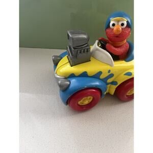 This Sesame Street Cookie Monster action figure comes with a yellow push 'n go race car made by TYCO Toys in 1998. The car features a fun design and is perfect for fans of Cars and Cookie Monster. The figure stands at 3 inches tall and has movable arms and legs, making it great for imaginative play.