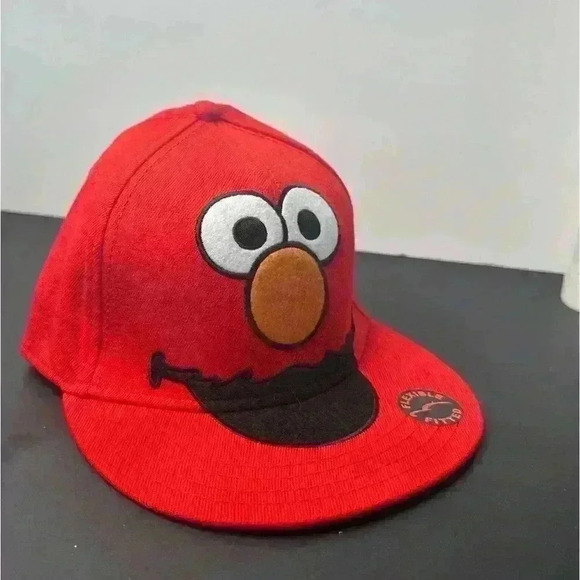 Sesame Street Elmo Embroidered Face Hat Cap Fitted Cap Small Red Wool Blend