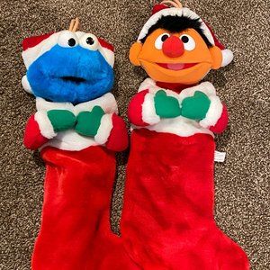 Sesame Street Ernie and Cookie Monster Christmas Hanging Socks VINTAGE