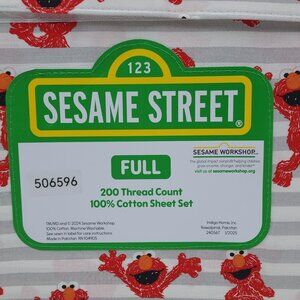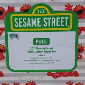 Sesame Street Full Double Sheet Set With Elmo Design 100% Cotton Red Gray White