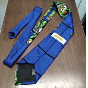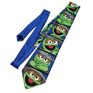 Sesame Street Men's Oscar the Ground Novelty Print Blue Neck Tie