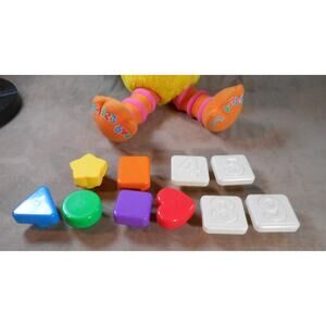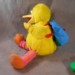 Sesame Street Play & Teach Big Bird Plush Works READ TYCO 1999 Vintage. Big Bird can play 19 different interactive games: Choose a number, shape, or color games, Share songs, jokes and favorite rhymes or a tricky tongue twister! NOTE: Sound works but is staticky. I'm not sure what the problem is. The battery compartment is clean with no corrosion. He has all his color shape blocks but only 4 of the 10 number blocks. Blocks store in his backpack. Overall the plush is in good condition--very clean. Measures approximately 17 inches long. No batteries are included. Please see pictures.