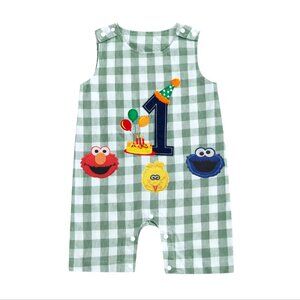 Sesame Street Romper First Birthday Elmo Outfit Cookie Monster Clothes Shortall
