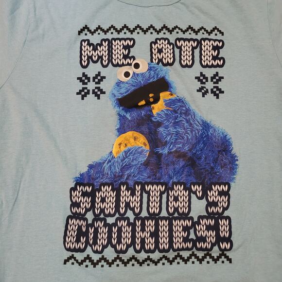 Sesame Street Size XXL Cookie Monster Me Eat All Santa's Cookies Unisex T Shirt