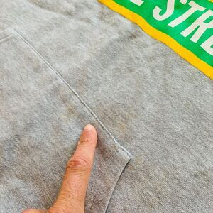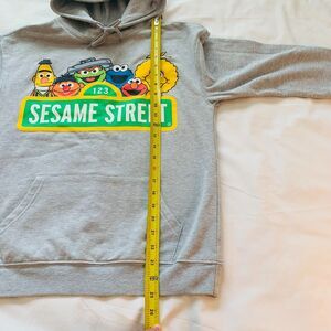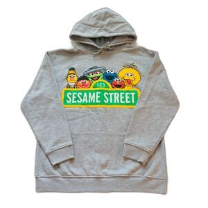 This hoodie features Big Bird, Elmo, Cookie Monster, Oscar the Grouch, and Bert & Ernie. There are a few stains, shown in the photos. It fits Unisex XS.