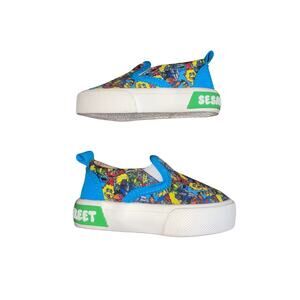 Sesame Street toddler sneakers! Featuring Elmo, Big Bird, and Cookie Monster, these slip-on canvas shoes are perfect for your little one.