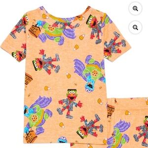 Multi Colored, Sesame Street, Elmo & Cookie Monster, Candy Corn, Pull On, 2 PC Set, Short Sleeves, Cotton, Ankle Pants, Size 5T, NWT.