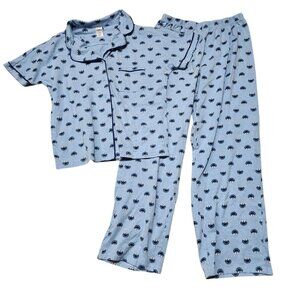 Sesame Street Womens Pajama Set Cookie Monster Print Soft Blue Short Sleeve M