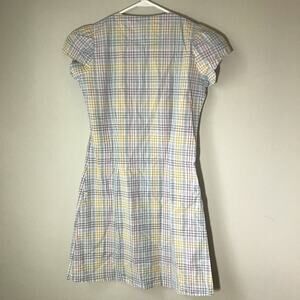 Sessun small agostina cotton plaid mini dress with cap sleeves and button front