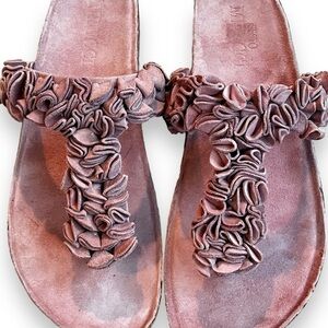 Sesto Meucci Baddon Thong Footbed Sandals Pink Suede Ruffles Comfort Size 9