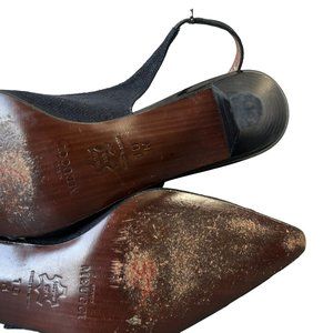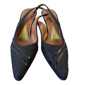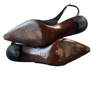 Sesto Meucci Black Fabric & Patent Leather Slingback Pointy Toe Heels Womens 10N