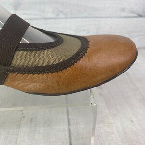 Sesto Meucci Brown Leather Gold Tone Metallic Mesh Mary Jane Ballet Flats Sz 8 N