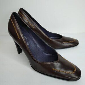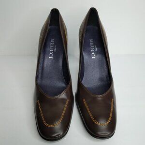 Sesto Meucci Brown Leather Stitching Details Pumps Heels Size 6B