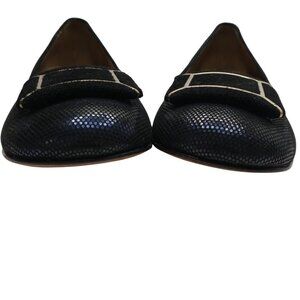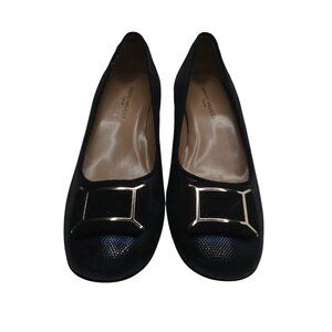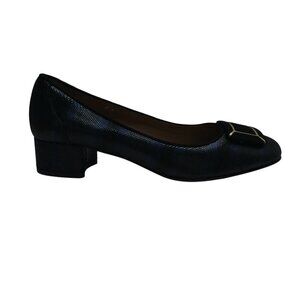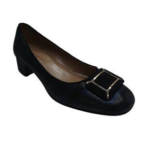 Sesto Meucci Firenze Blue Black Striped Leather Chunky Heel Pumps Heels Womens 8