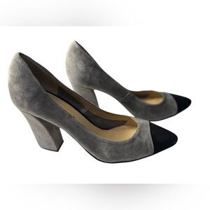 Sesto Meucci Gray and Black Suede Chunky Block Vintage Heels Classic 7.5B Shoes