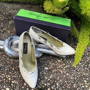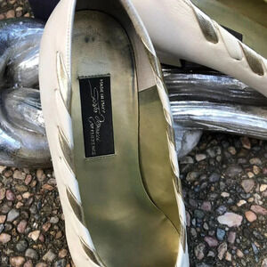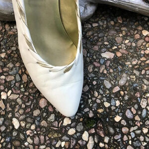 Sesto Meucci Italy Vintage Matte Winter White and Gold Woven Metallic Trim Pumps