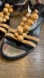 Keywords: Sesto Meucci, Italian sandals, leather sandals, beaded sandals, black sandals, beige sandals, women's sandals, size 8.5M, designer sandals, summer shoes, Vero Cuoio, Made in Italy, wood beaded, ankle strap sandals