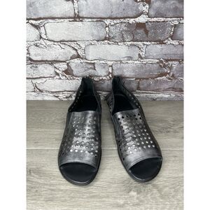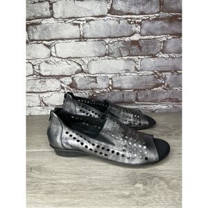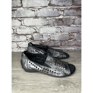 Selling Sesto Meucci Pewter Leather Perforated Back Zip Wedge Shoes Women Sz 11N US/42EU