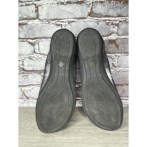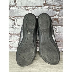 The Sesto Meucci Pewter Leather Perforated Back Zip Wedge Shoes are stylish and comfortable flats perfect for various occasions such as travel, activewear, parties, or casual outings. Made with leather lining and upper material, these shoes feature a perforated design with a back zipper closure. The silver color and open toe shape add a touch of elegance, while the rubber outsole provides durability and support. Designed for arch support and cushioning, these shoes are a fashionable choice for the summer, fall, and spring seasons. Made in Italy, these shoes showcase the brand's logo accent and are ideal for women who appreciate quality and style.