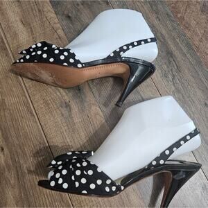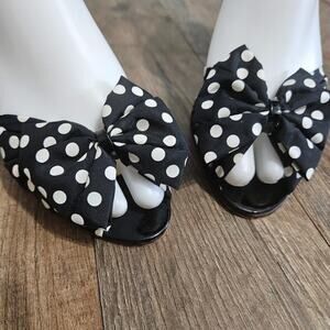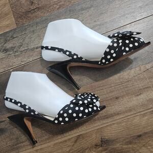 Sesto Meucci Strappy Sandal Polka Dot Black White Bow 3" Open Toe Dressy Heels