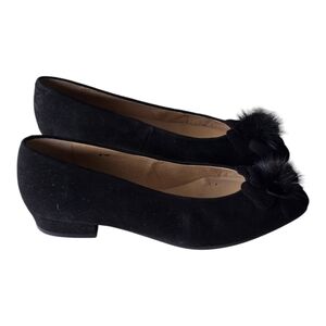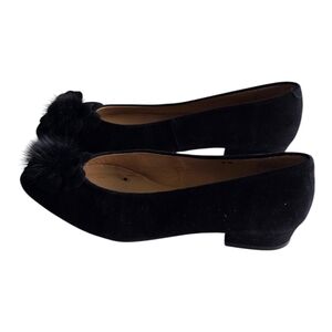 Sesto Meucci Suede Ballerina Slip On Pumps 8 Black Women Rabbit Fur Pom …