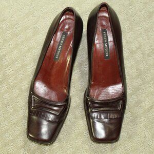 Sesto Meucci Women's 10M Brown Leather Block 2" Heel Loafers