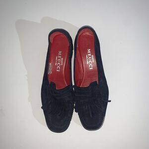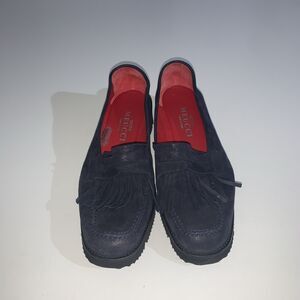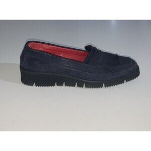 Sesto Meucci Women's 7M Loafer Blue Suede Fringe Slip On Lug Sole Wedge