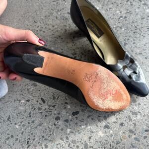 vintage shoes, Italian leather, 1980s heels, cutout pumps, Sesto Meucci, mid heel, classic style, black leather pumps, timeless fashion, retro footwear