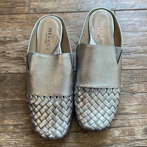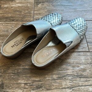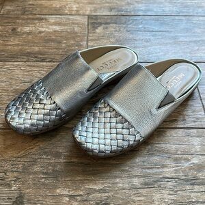 Sesto Meucci Womens Shoes silver Woven Leather Slip on Comfort Walking Mules 8. Like new condition