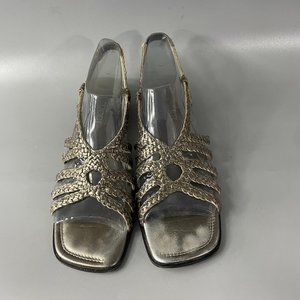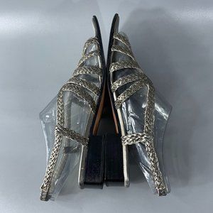Sesto Meucci Woven Silver Metallic Leather Sandals, Size 7 1/2