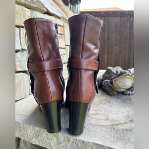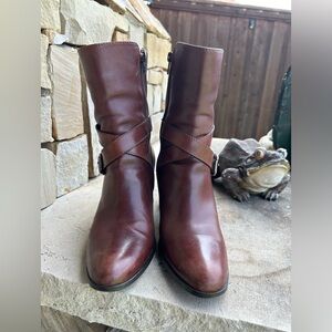 Sesto Meucci brown leather ankle buckle wrap boot with side zip closure Sz-8N. A
