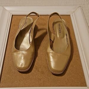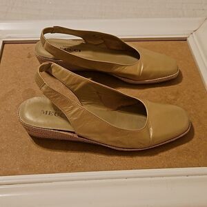 Sector Meucci pale gold leather sling back, low wedge shoes, size 7. Leather is extremely soft, Italian made. Very good pre loved condition, measurements in pics, smoke free home, ships next day. Bundle and Save!