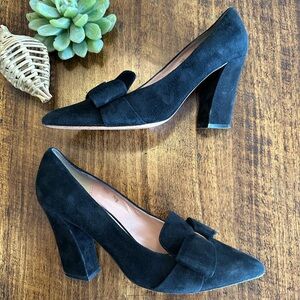Sesto Muecci | Italian Black Suede Pointed Toe Pumps with Bow Detail